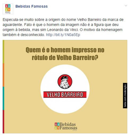 Usei uma pergunta direta: “Quem é o homem impresso no rótulo de Velho Barreiro?”, porque essa é uma curiosidade natural do público. O texto funciona porque entrega uma informação surpreendente (é Leonardo da Vinci), mas mantém um toque de mistério. A estética minimalista valoriza o rótulo e o link convida o usuário a explorar mais curiosidades no site. A peça transforma informação em engajamento e reforça a autoridade da marca no segmento.