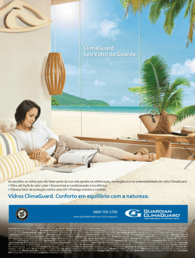 Anúncio do novo vidro da empresa, com tecnologia para amenizar os efeitos de raios UV