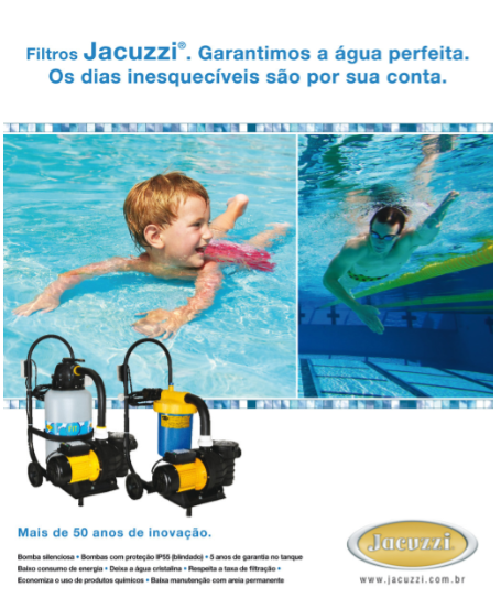 Campanha impressa para divulgar filtros Jacuzzi em revistas segmentadas, com foco em diferenciação técnica e valor percebido.